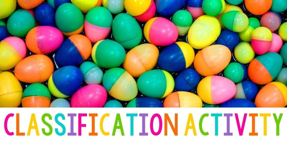 Put together an easy spring classification activity for your science center with just a few bags of plastic eggs; for preschool, pre-k, and kindergarten.