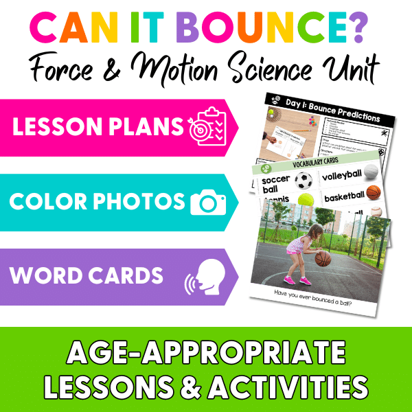 Do you need developmentally appropriate science centers, activities, and lesson plans? Your little learners will have blast exploring balls and bouncing in this done-for-you force and motion science unit.