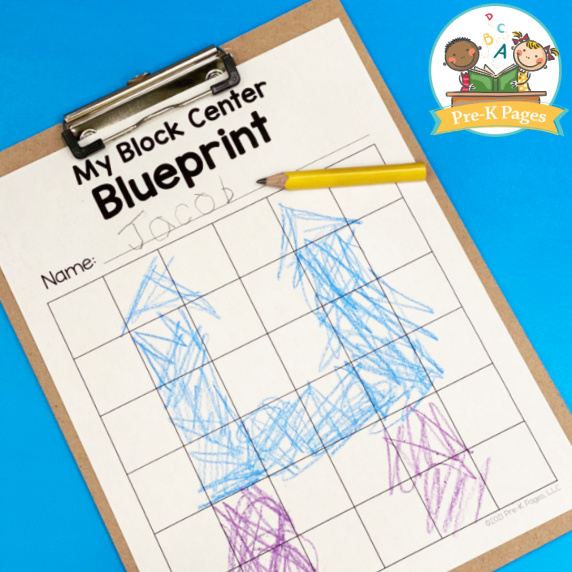 • Add the printable blueprints and planning sheets to your block center along with clipboards, crayons, and pencils.