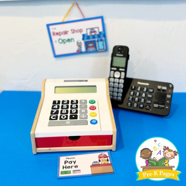 Printable props to help you easily transform your dramatic play center into a car repair shop. Your little mechanics will love fixing and repairing cars in this pretend play scenario!