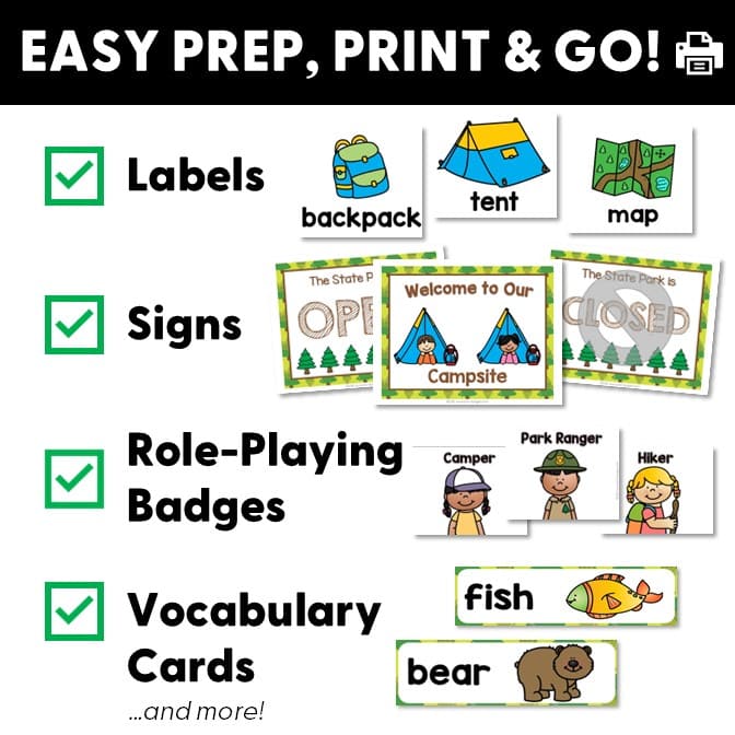 Camping Dramatic Play Theme: What You Get