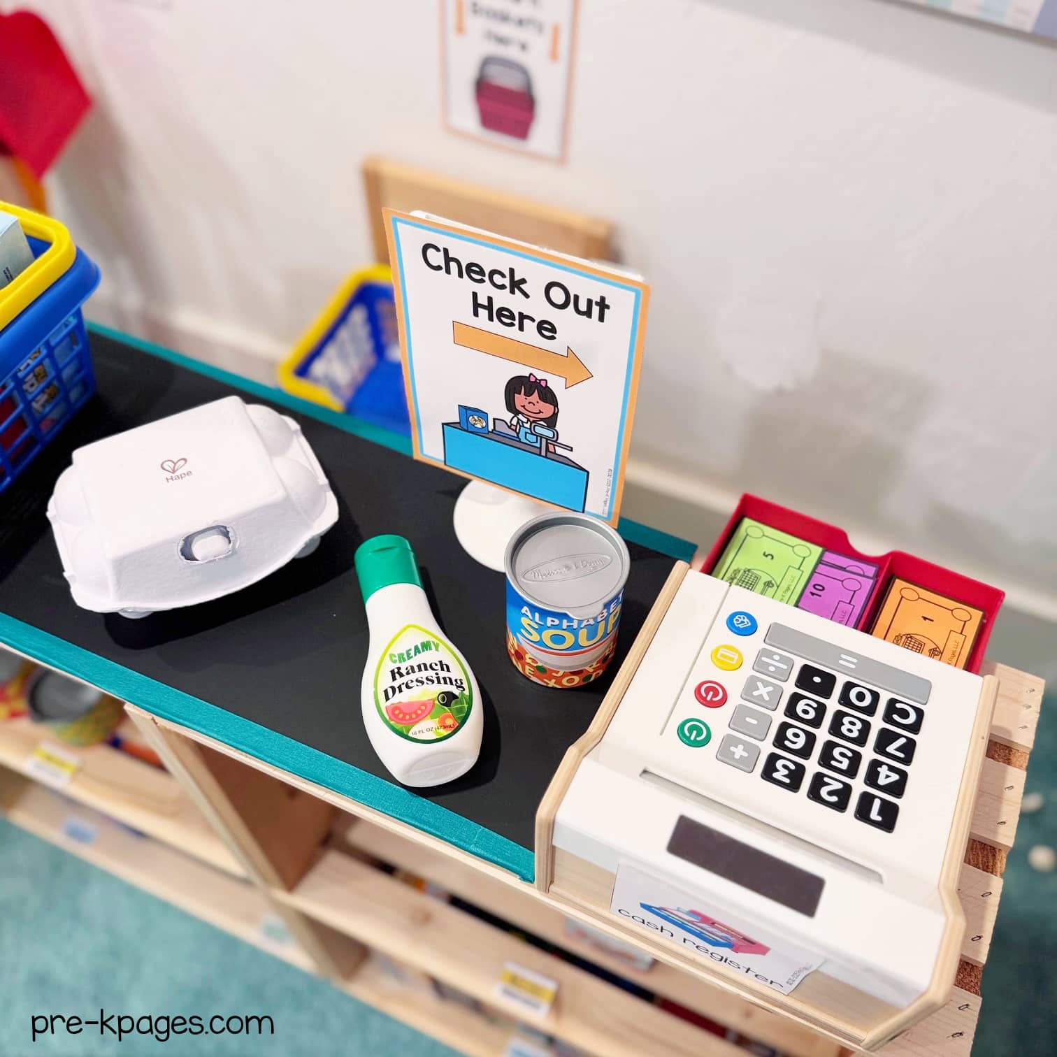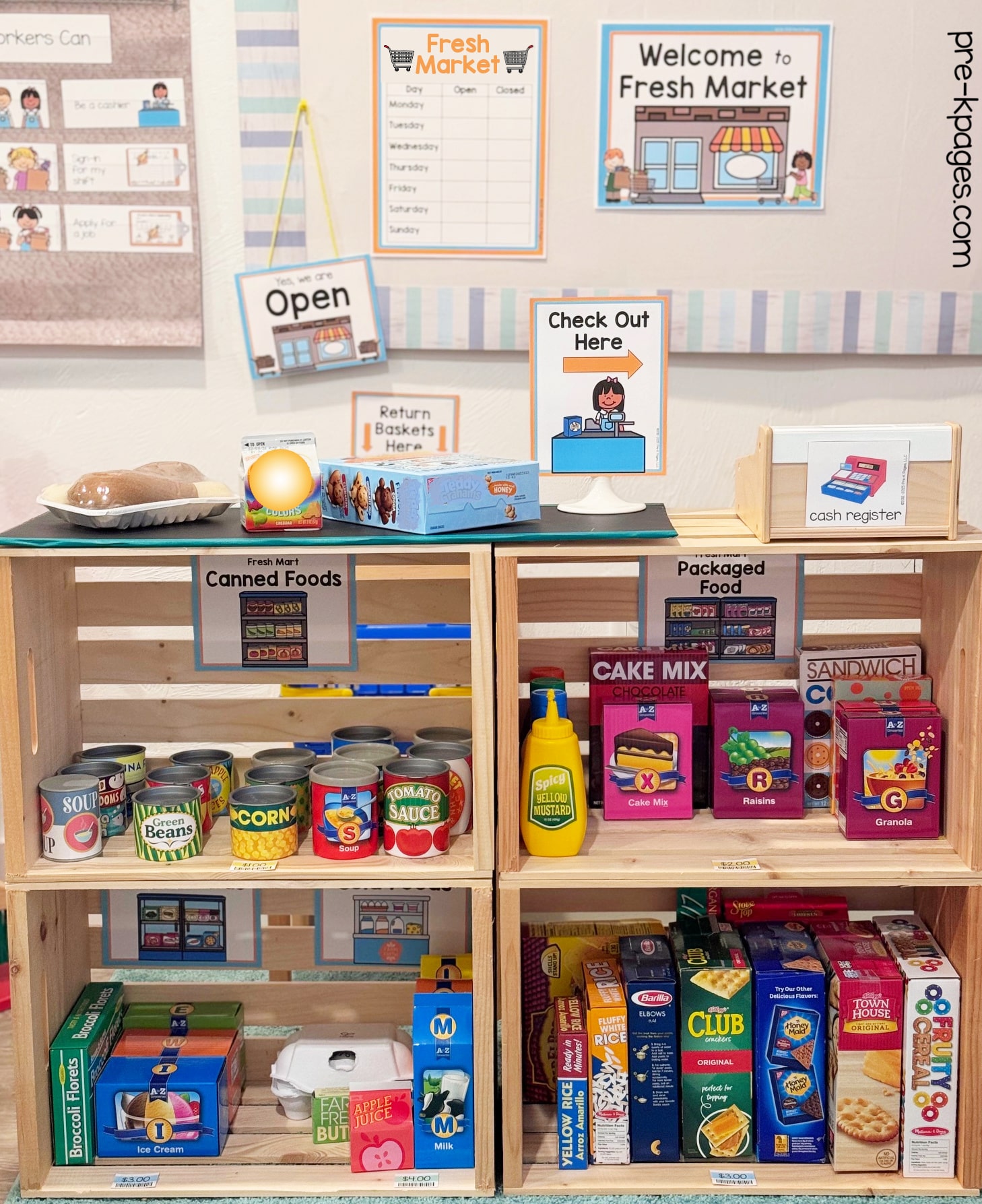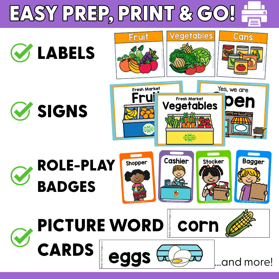 A grocery-themed dramatic play kit that includes everything you need to set-up an engaging supermarket in your classroom.