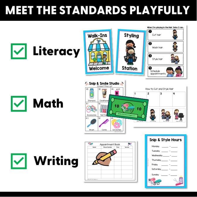 Printable props to help you easily transform your dramatic play center into a Hair Salon. Your little learners will have a blast pretending to work and visit the dramatic play hair salon with these printable props to enhance play and increase engagement.