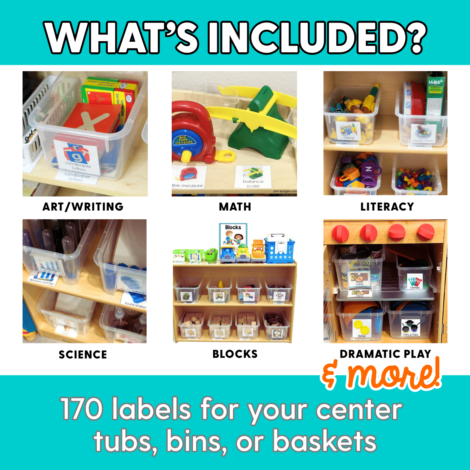 This resource is ideal for preschool classroom labels, pre-k center labels, real photo labels, shelf labels, bin labels, and classroom organization systems.