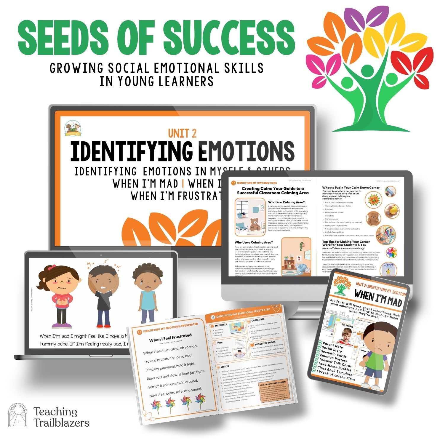 Unit 2 of the Seeds of Success Social-Emotional Learning Curriculum gives you everything you need to teach young children how to identify and cope with their big emotions in a low-prep format! This research-based program is designed especially for preschool, pre-K, and TK classrooms and aligns with the CASEL Framework.