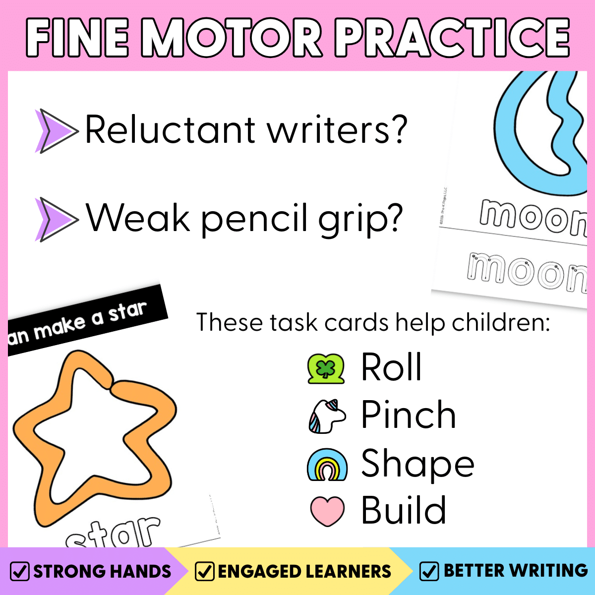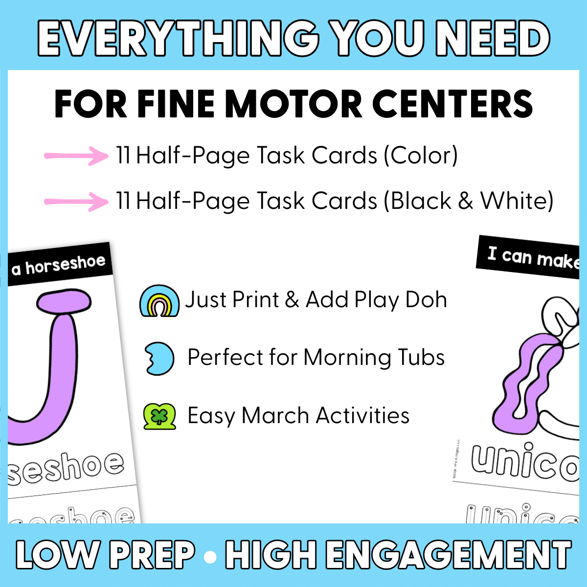 If you’re looking for engaging preschool fine motor activities, play dough task cards, March centers, St. Patrick’s Day centers, or hands-on Pre-K writing readiness activities, this Lucky Cereal set makes learning playful and purposeful. Add it to your fine motor center rotation and watch your students build the hand strength they need for writing success — one cereal-inspired creation at a time.