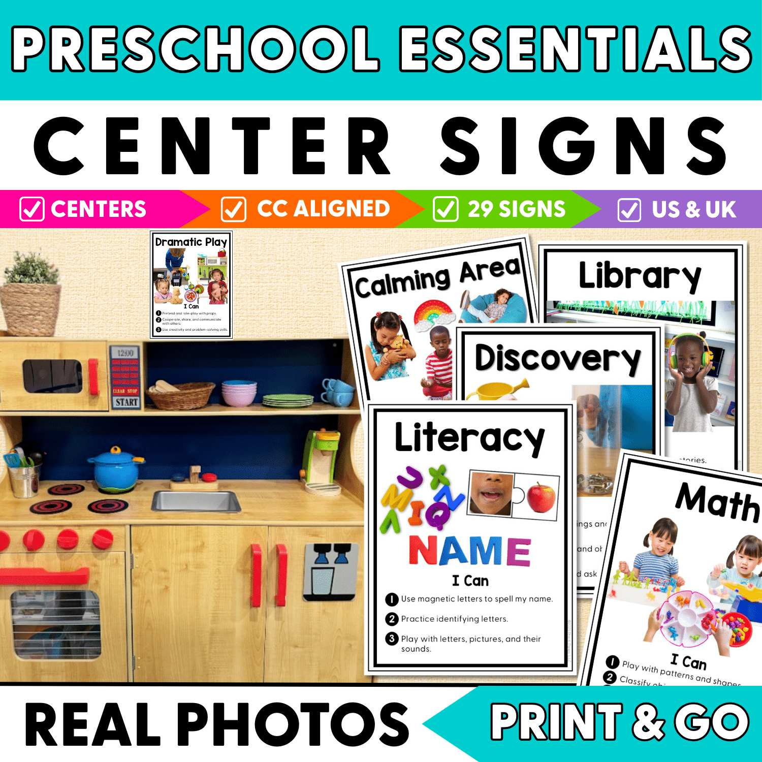 Preschool Center Signs with “I Can” Statements | Real Photo Center Posters Pre-K Preview