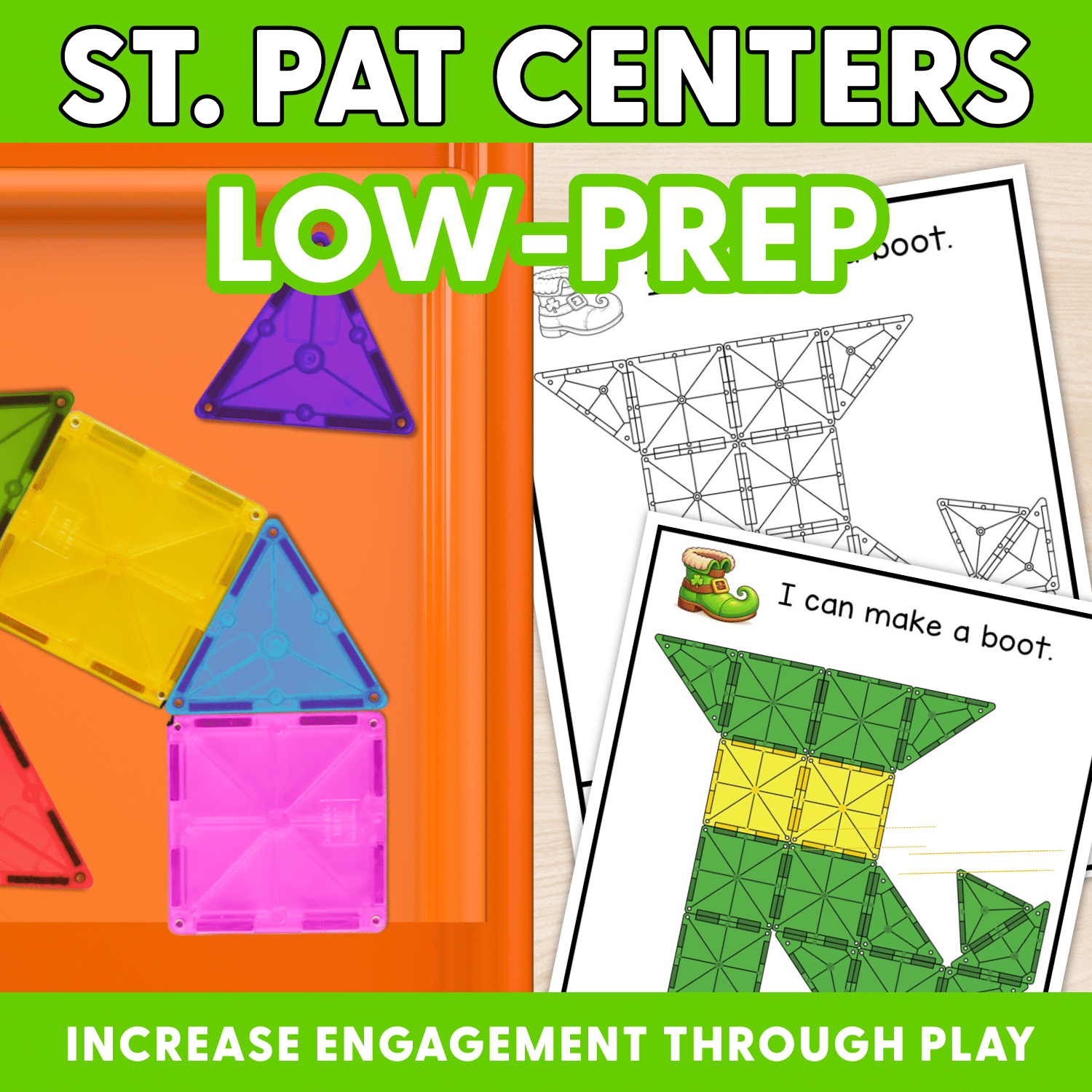 These St. Patrick’s Day magnet tile mats support structured STEM building challenges.