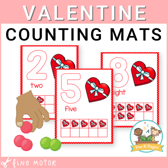 A set of free Valentine theme play dough mats to help your kids develop number sense and fluency within ten.