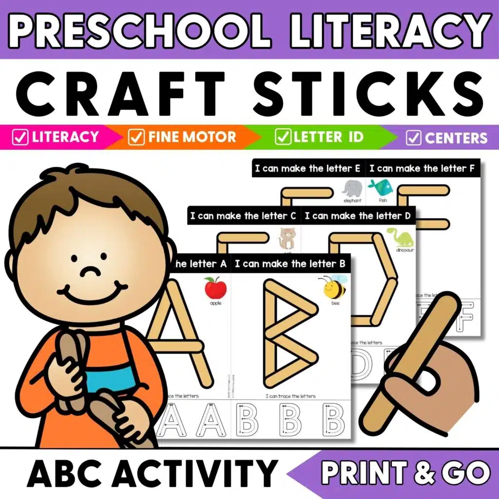 Alphabet craft stick task cards will help your preschool students practice letter formation, letter identification, letter sounds, and fine motor skills.