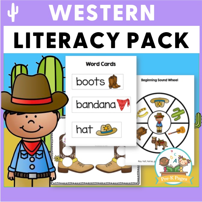 59 pages of fun, hands-on western themed literacy activities. Small group activities to help your pre-k, preschool, and kindergarten students meet early learning standards.