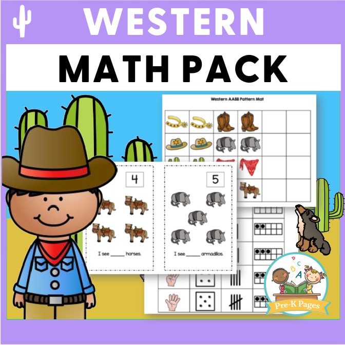 Fun, hands-on western themed math activities to help your Preschool, Pre-K, or Kindergarten students meet early learning standards.