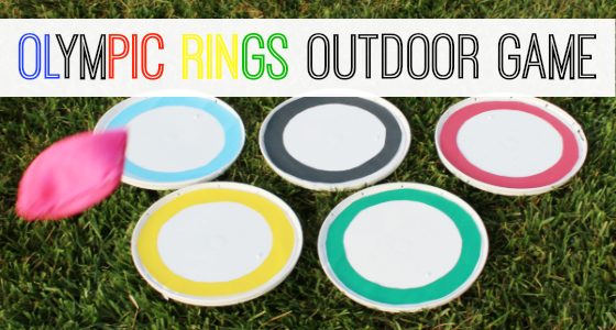 This outdoor tossing game uses homemade targets in Olympic colors and bean bags for gross motor fun with preschool, pre-k, or kindergarten.